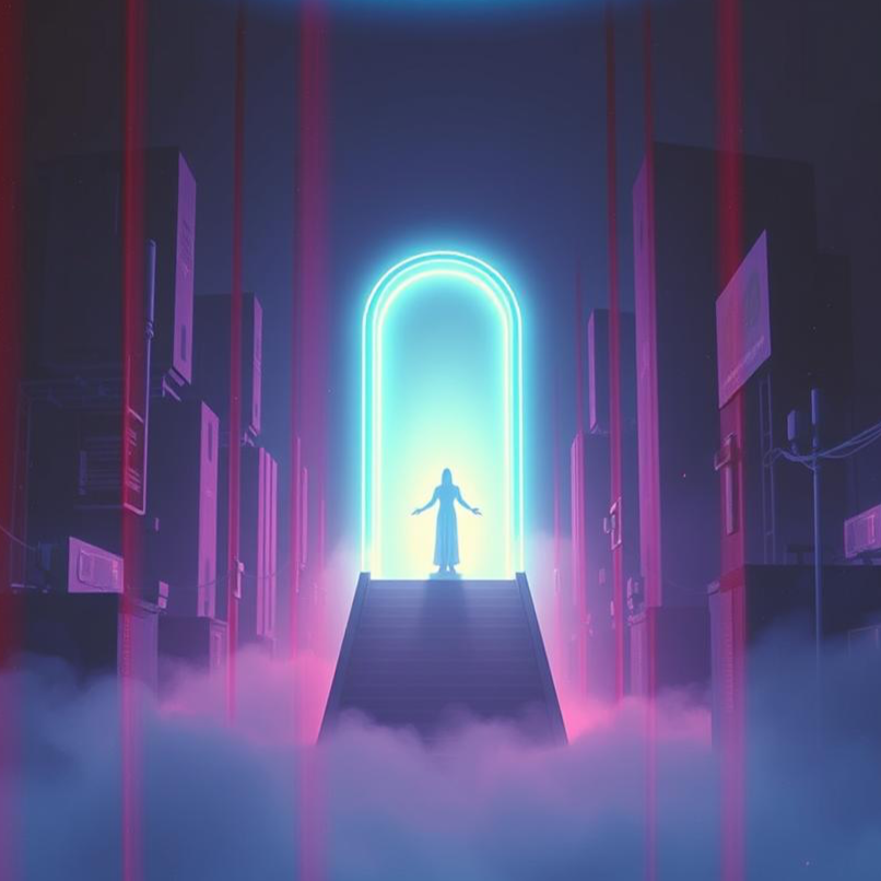 Iconic early 90s UK underground techno-pop meets dark eurodance, 90s rave gospel, vintage early 90s sound, 130 bpm, ambient intro with spacey pads and airy sweep FX, no drums at first, acidy synth hook comes up, building tension like a spacecraft landing in a dystopian temple, epic synth arpeggiator in C# minor with analog warmth and sawtooth grit, Gospel-inspired black female vocals with wide stereo reverb, contrasted by a preacher-style male 90s technopop-rap vocal with tight delay, rap vocal light saturation and subtle megaphone EQ, Breakbeat meets 909 kick & snare, hypnotic and euphoric spiritual dance atmosphere with gated reverb snares, dreamy pads, choir stabs, sample cuts, and vintage trancentral sound textures, Inspired by The KLF "what time is love" and Snap! "rhythm is a dancer", ‑pop sound, ‑commercial edge, ‑happy melodic
