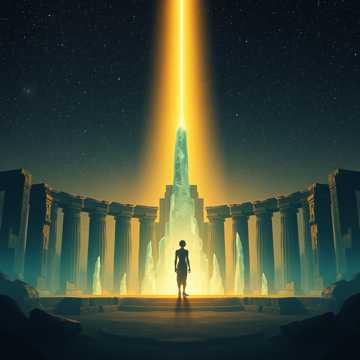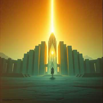 Ambient orchestral, cyclical leitmotif, evolving synth pads, minimal percussion, contemplative, open-ended, 60 bpm