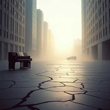 Post-apocalyptic ambient, haunting piano, distant orchestral pads, subtle electronic hum, female vocal (ethereal), fragile, reflective, 65 bpm