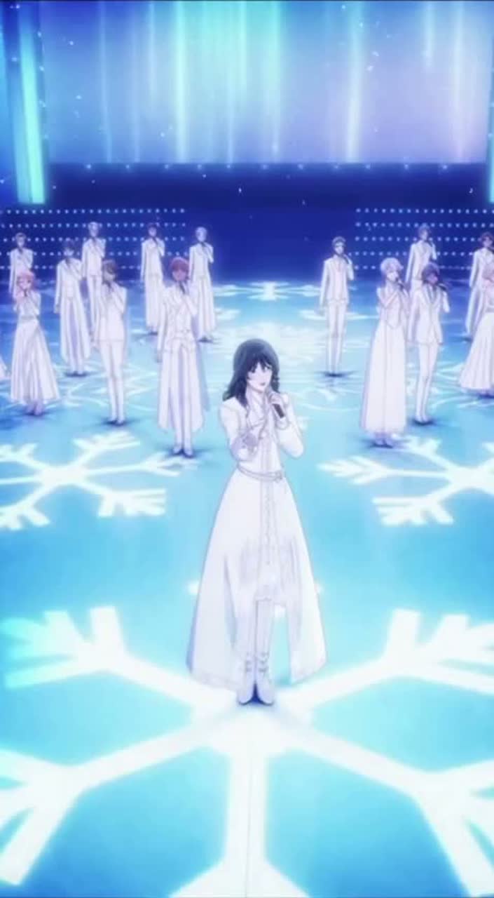 A large idol group song sung by many young female voices, Theme: White Christmas, expressing the emotional anxiety of couples drifting apart before the holiday, Instrumentation: violin and piano, creating a transparent and melancholic atmosphere, Style: smooth, limited animation-like flow in sound, with layered harmonies and alternating solo lines, Mood: tender, bittersweet, conveying both the beauty of winter scenery and the unease of emotional misalignment, Language: Japanese lyrics (hiragana and katakana), soft and accessible, 40 voices in chorus and harmony