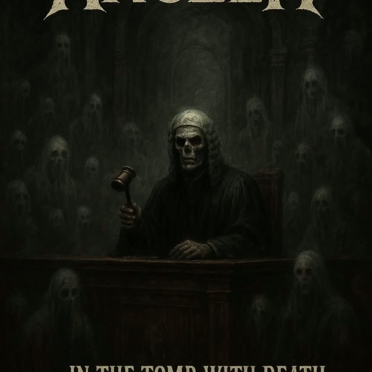 Extreme metal blending death metal with early speed and thrash metal aggression, Fast tremolo-picked riffs, raw and cold production, sharp rhythmic precision, and relentless double-kick drumming, Dark, ominous atmosphere with heavy doom-metal influence in slower sections, Male vocals only, ranging from deep demonic growls to harsh shouted delivery, Horror-inspired intro with creepy child-like male vocals and cinematic tension, Themes of damnation, judgment, ritual, and inevitability, Brutal yet epic, unsettling and oppressive, with a sinister, ritualistic feel throughout