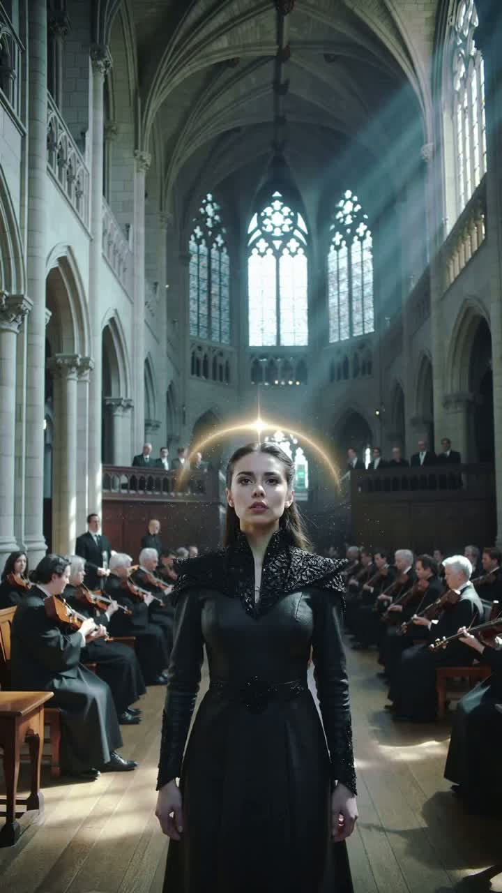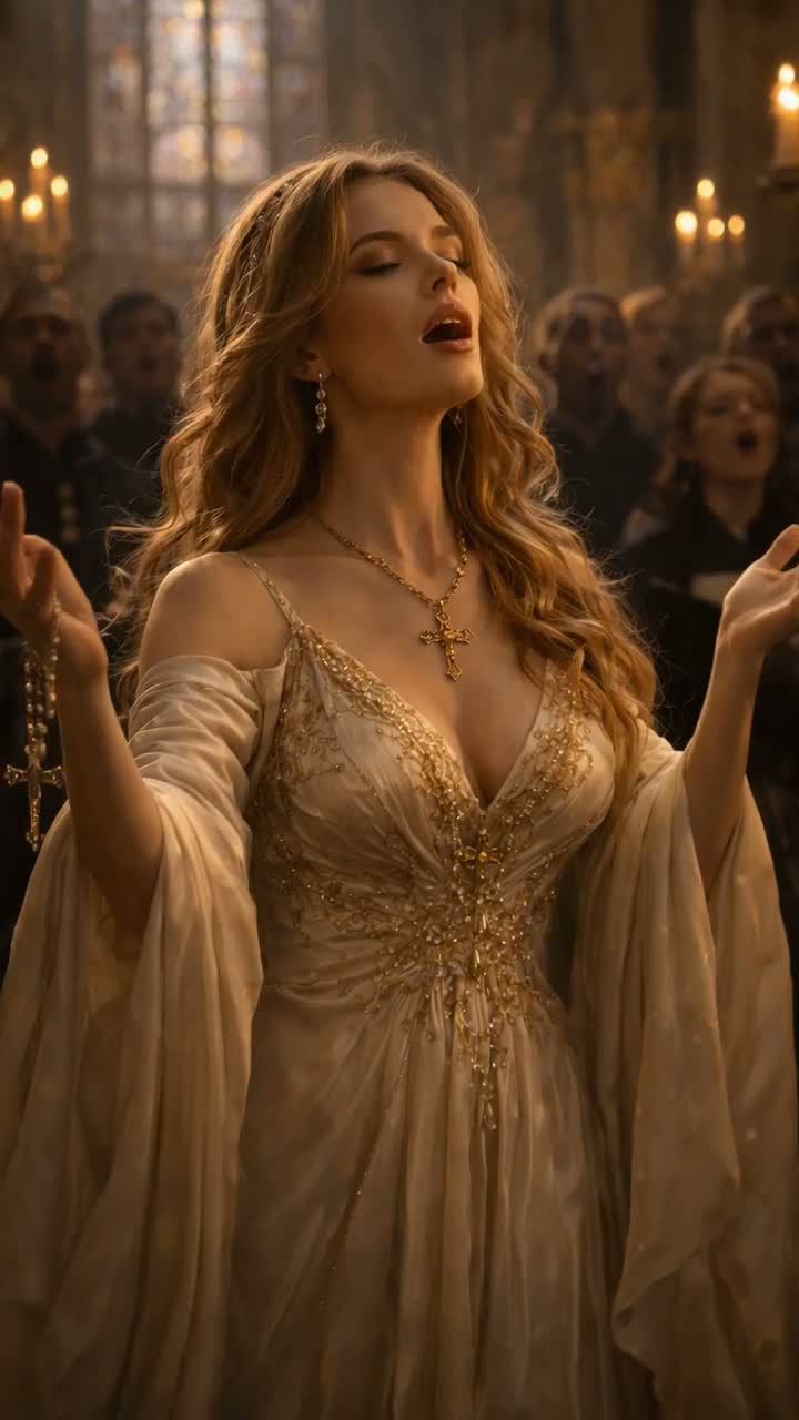 A slow ethereal cinematic hymn opens with pure angelic female vocals, supported by soft orchestral pads and spacious cathedral reverb, Lush choir harmonies and resonant cello set a sacred backbone, while rising violins offer hopeful melodic lifts, The arrangement breathes, with glowing upper frequencies and gentle dynamics, sustaining a spiritual, light-vs-darkness mood throughout