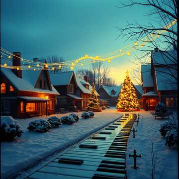 guitar intro, cozy pop Christmas instrumental blended with cinematic winter magic and upbeat holiday pop, Guitar chords, Warm piano, upright bass, light swing drums mixed with crisp pop percussion, bright acoustic guitar, gentle shimmering, soft brass accents, cinematic strings, chimes, and glockenspiel, Nostalgic, joyful, sparkly, magical, warm, and uplifting, Cozy verses, magical build, big upbeat chorus with classic holiday feeling, guitar outro, snowy, masterpiece, 4 minutes, melodic electric guitar, rhythmic guitar