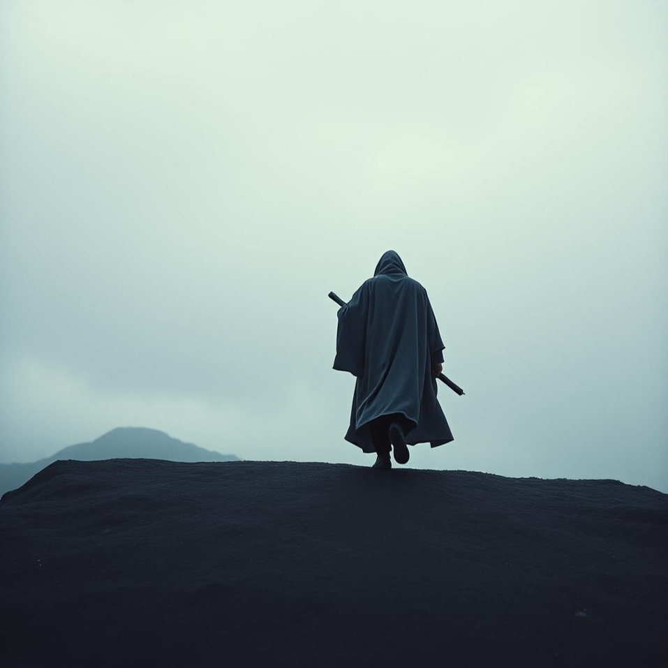 Instrumental with layered, haunting vocals in Nordic folk ambient neofolk style, evoking ancient prophecy and sacred battle rites, Features alternating male and female leads with harmonies, unison choral chants, and dynamic vocal interplay to embody both the grounded power of the champion’s call and the airy voice of fate, Tagelharpa provides resonant plucks, goat horn delivers deep, mournful drones, kravik lyre adds delicate arpeggios, and deep percussion (frame drums and goat-hide drums) drives a slow, deliberate 4/4 rhythm at 60 BPM