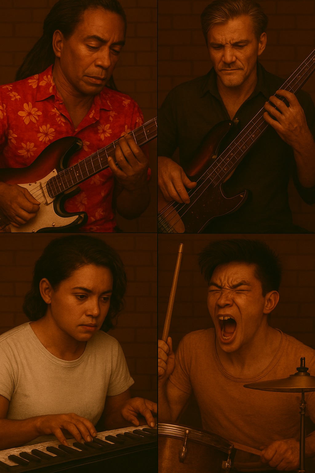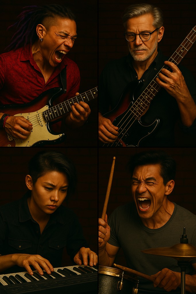 “Generate a slow, crushing doomcore track with relentless blast beats, cymbal-heavy drumming, and a brutal drum solo, Twin down-tuned guitars create dissonant, grinding layers, while the chopper-style bassline twists aggressively underneath, Include extreme vocals—deep, distorted screams and guttural roars with overwhelming intensity, The mood is violent, oppressive, and apocalyptic, like a descent into a mechanical underworld, Inspired by doomcore, industrial death metal, and extreme sludge, ”