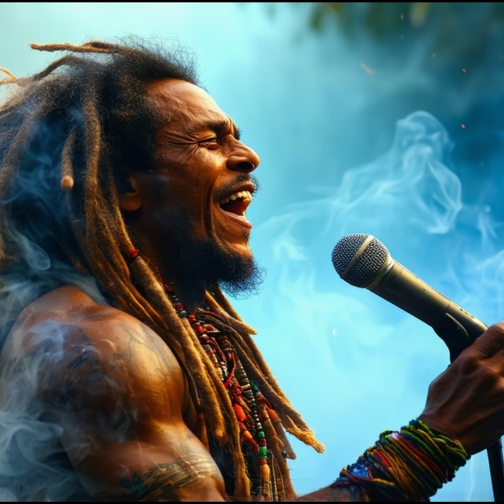 Create a 5-minute reggae-trap fusion track with heavy, resonant 808 basslines and syncopated Caribbean swing, The track should blend the laid-back groove of reggae with the sharp percussive edge of trap—offbeat skanking guitar or keys layered under rolling hi-hats and snappy snares, Include breakdowns and instrumental drops that feel primal and expansive, giving space for movement and emotional rise, The rhythm should be infectious, built to move bodies and stir souls, Allow for tempo shifts and layered textures that mirror the emotional arc of finding freedom through music, Stammered and dynamic vocal phrasing should sit atop the beat with raw intensity, Mood: cathartic, physical, hypnotic—music as therapy and movement