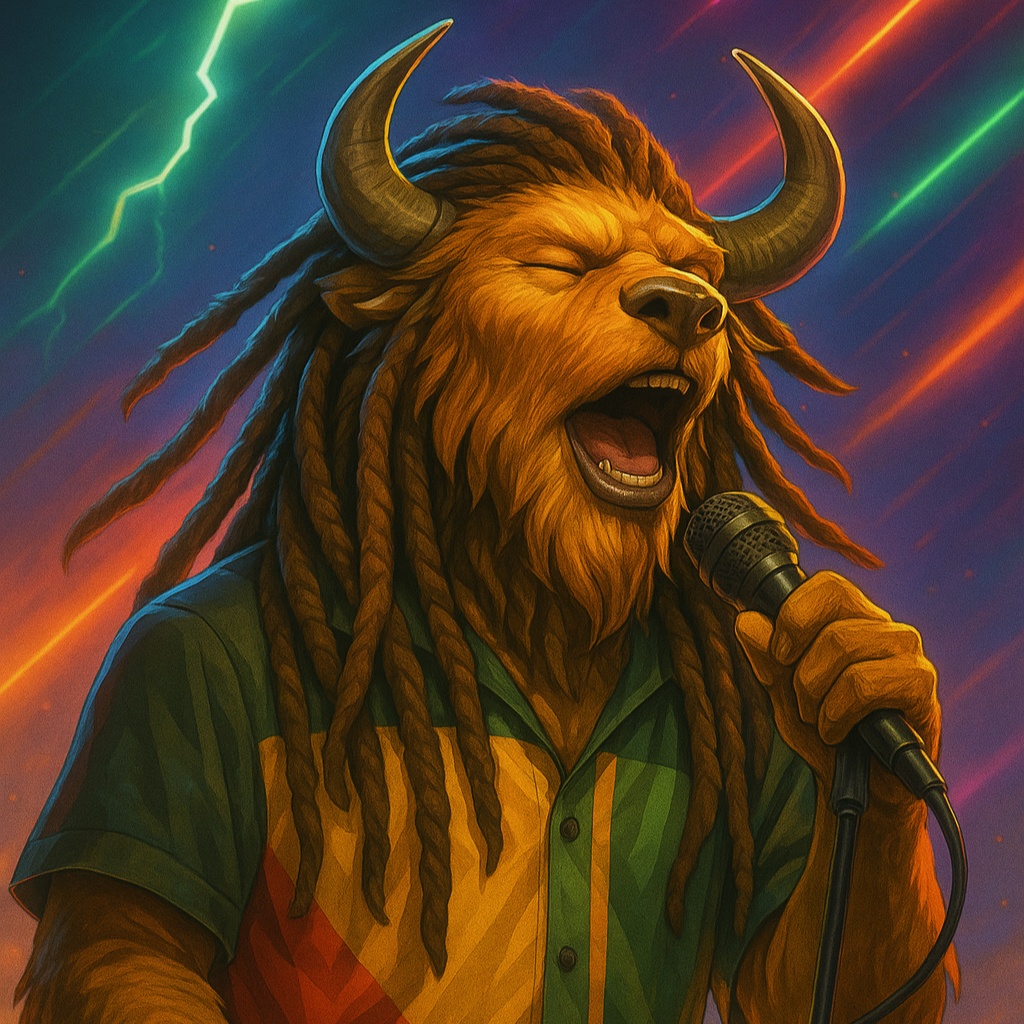 A surreal and theatrical reggae-dancehall fusion with yodelling vocals and spoken-word breakdowns, The verses blend conscious monologue and chaotic character shifts like Ren’s “Hi Ren, ” performed over deep one-drop reggae riddims with modern dancehall drums and playful syncopation, Hooks burst into dramatic, emotional yodelling — half ridiculous, half profound — layered with echo and delay like a lonely soul calling into the mountains, Instrumentation features skankguitar, heavy dub bass, bouncing percussion, and occasional alpine accordion or whistle for surreal flair, Theme: a person wrestling with self-doubt, social pressure, and the absurdity of being honest in a loud, selfish world, Unexpected, theatrical, moving, and weird in all the right ways, ‑Glitch