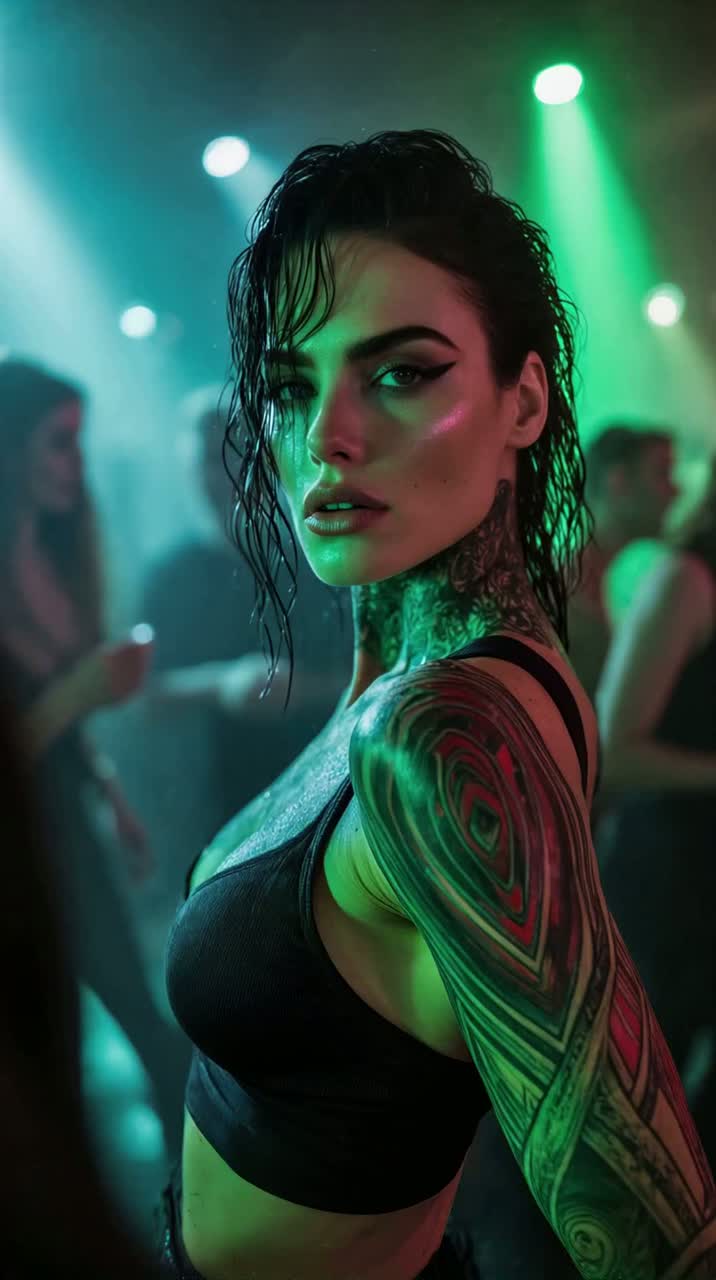 rap, and shimmering synths, high-energy with playful attitude, distorted basslines, rap-infused, blending melodic hooks with fierce rap interludes, edm-driven, female vocals, a vibrant blend of slick beats, phonk-inspired, edm, pop, female vocals, k-pop