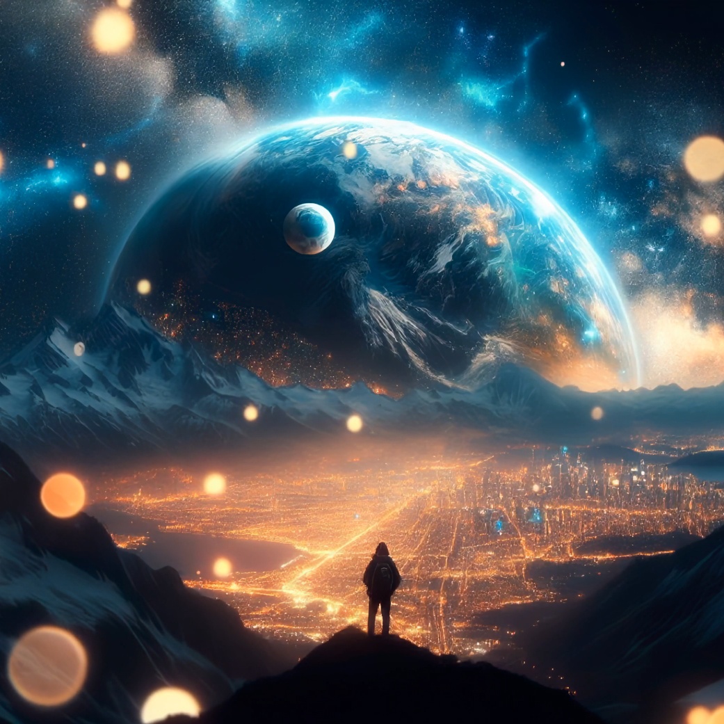 Sweeping cinematic strings propel the piece, underpinned by driving rock drums and soaring electric guitar lines, Ambient electronic layers, lush synth pads, and dynamic arpeggios weave throughout, conjuring a vast interstellar atmosphere both epic and contemplative