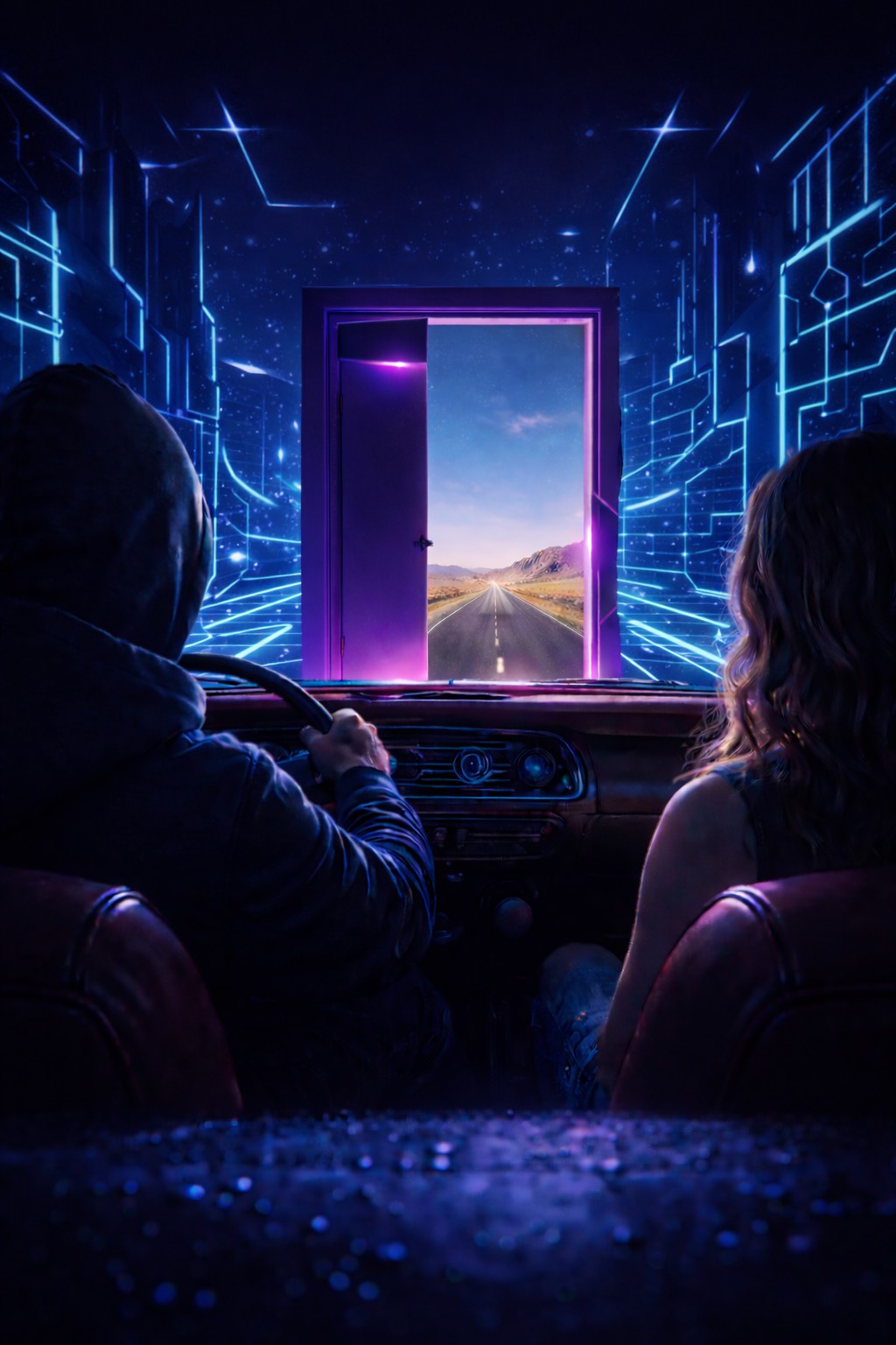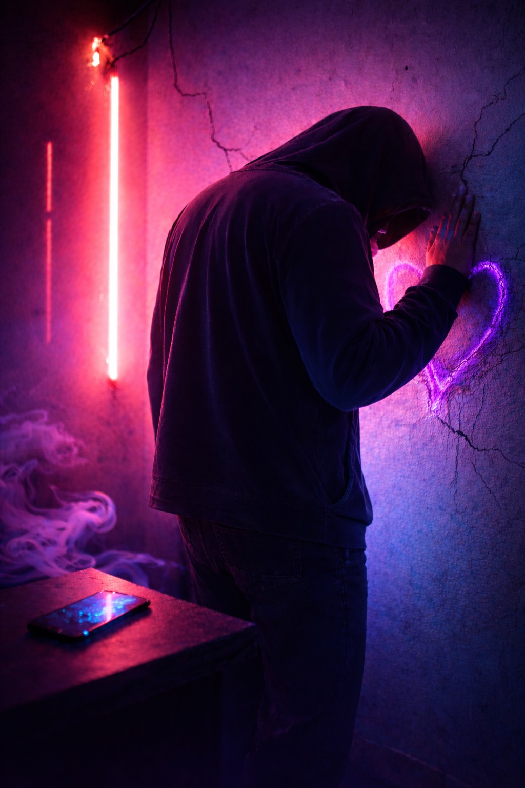 Minimalist Darkwave, UK future garage; intimate male vocals, pop instrumental with neon midnight drive energy, Pulsing analog bass, cinematic pads, clean four-on-the-floor kick with future garage shuffle, Simple, unforgettable synth hook, Muted chorus-soaked electric guitar with tape delay for motion, Surprise crystal/glass harmonica tones in the chorus, Subtle wordless vocal chops for human texture, Melancholy, seductive, stylish, No EDM drops, Continuous forward motion, bittersweet but cool