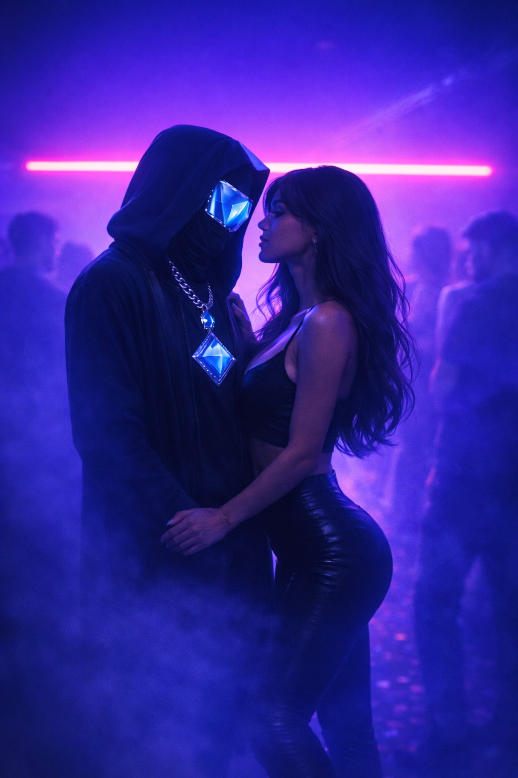 An upbeat darkwave track fused with UK future garage, set at 115–120 BPM with a clean, danceable pulse, The production is driven by a tightly optimized sub-bass: mono, centered, lightly saturated, and side-chained to the kick for clarity, focused in the 35–55 Hz range to translate across club systems, headphones, and phone speakers, Darkwave synths provide cold, minimal texture through short arpeggios, muted pads, and subtle detuned leads, leaving intentional space for low-end impact, UK future garage percussion adds swing with shuffled hi-hats, ghost snares, and restrained groove, Male vocals are intimate and close-mic’d, rhythmically precise and emotionally controlled, with subtle pitch processing and spatial effects to enhance tension without overpowering the mix, The overall feel is deceptively upbeat, hypnotic, and tightly controlled, masking a darker, destructive core