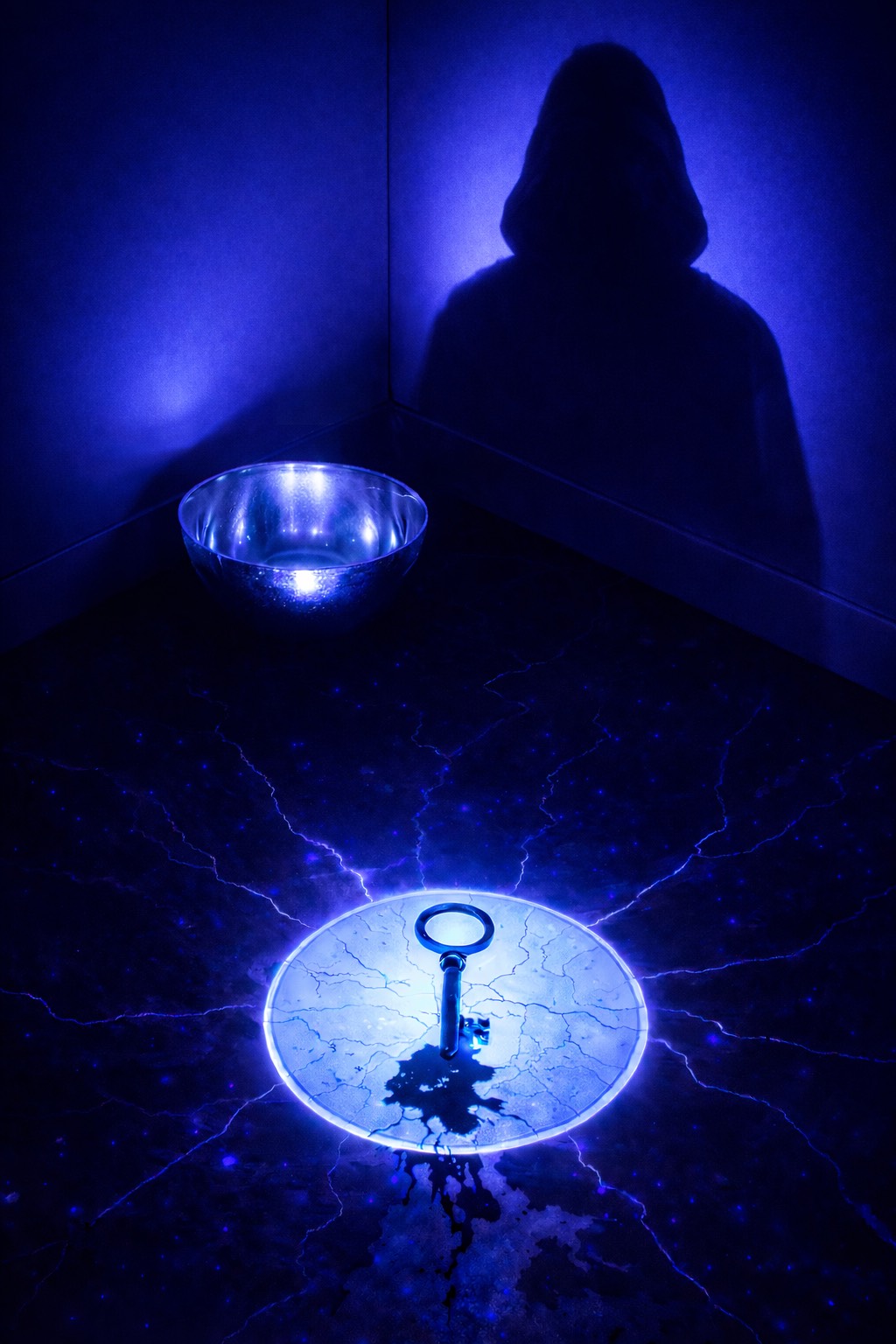 Minimalist Darkwave, UK Garage, Deep Sub-Bass, Repetitive and Hypnotic Rhythm, Filtered Male Vocals, Focus on Existential Isolation and Rhythmic Density, Featuring a felt-dampened, reverb-drenched piano motif