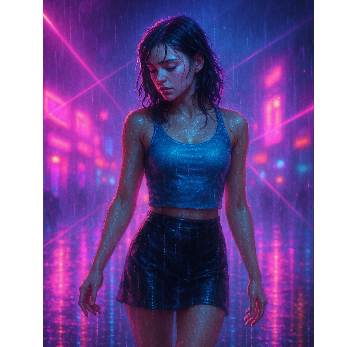 Drums: Punchy 909 kick, bright clap, trance snare build, Bass: Driving offbeat bass, filtered movement, Synths: Supersaw lead, airy pads, bell arps, Vocals: Emotional female lead, reverb-heavy, layered harmonies, FX: Rain ambience, risers, echoes, reverse crashes, Mood: Emotional, nostalgic, yet powerful — “dancing through heartbreak, ”