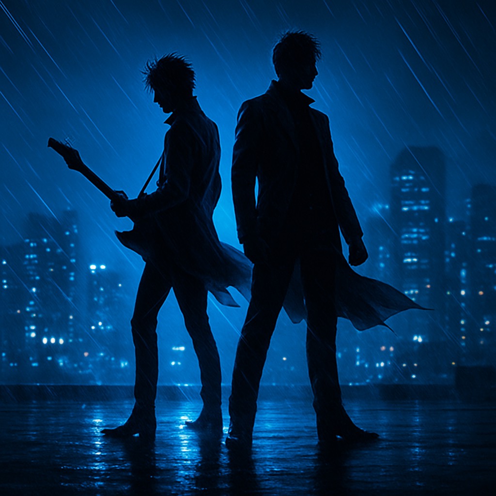 Fast-paced 80s Japanese rock at around BPM 160, Strong new-wave and rock mixture with a sharp, cutting electric guitar tone, Bright chorus-effect rhythm guitar and aggressive, syncopated lead phrases, Punchy 8-beat drums with tight snare, dry mix, Warm but driving bass line, Minimal synth stabs for atmosphere only, Vocal: emotional, sharp-edged male voice with a cool and urgent tone, Confident phrasing, slightly high register, urban attitude, Uses words like “ベイビー”, “オンリー”, “ロンリー” naturally, Mood: neon-lit night, speed, rebellion, cold tension with a blue glow, Energetic, tight, punchy, and stylish, ‑kpop