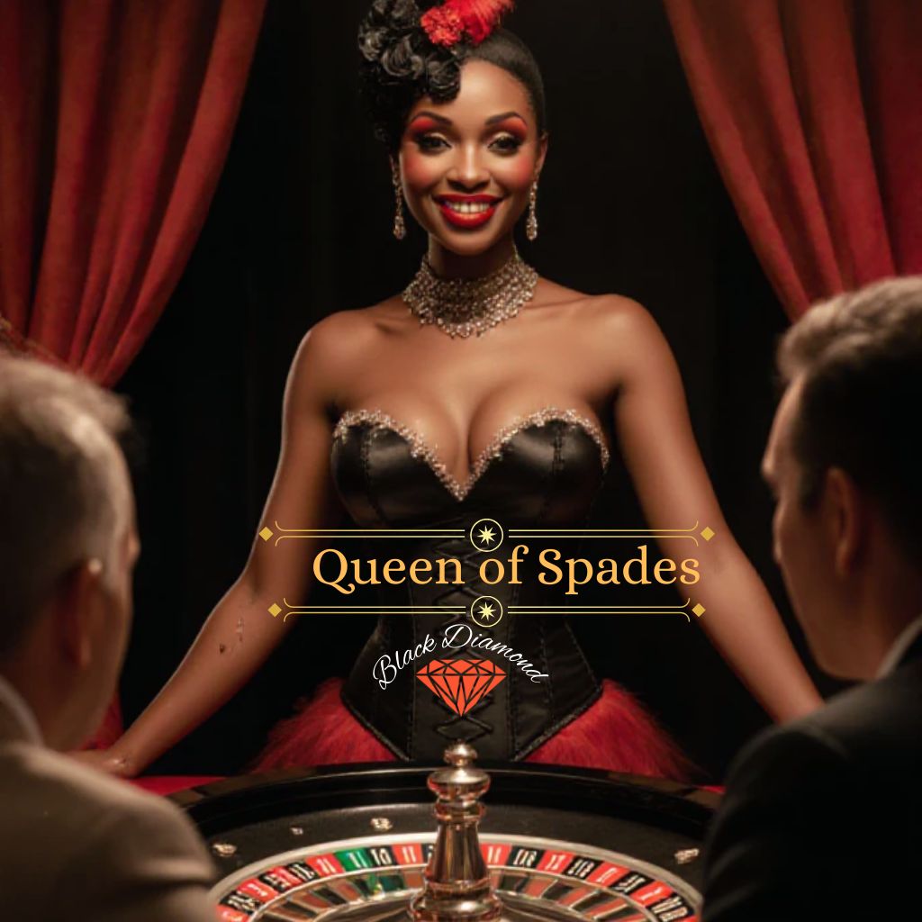 [Casino ambience: dice rolls, roulette wheel spinning, slot machine dings/glitches, Brass stabs punctuate swing grooves, Glitch/static FX on transitions (esp, pre-chorus and outro), Outro fades with roulette clicks, jackpot ding, Lady Luck laugh, Vocal Style: Swing verses: Female lead, cabaret/jazzy, sly and seductive, Playful phrasing, smoky club vibe, Death Metal chorus: Deep male vocal growls/screams, menacing, Hybrid final chorus: Swing vocals + growls trading lines, Whispered parts in bridge: close-mic, eerie