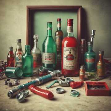 Gloomy psychedelic punk, 95 BPM, Male baritonal vocals, muted trumpet, LCD treated bass saxophone, Ganja double bass, inverted vocals, radio filters, crowd noises, The mood is surreal, drunken, ironic