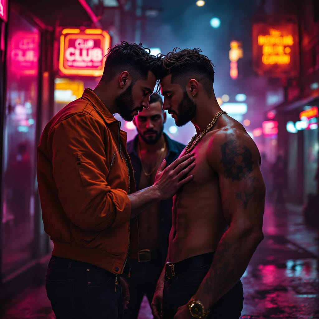 neo-reggaetón club banger; dembow riddim with syncopated 808s and crisp rimshots; dark Latin trap synth bass, chopped vocal stabs, layered perreo percussion; humid club ambience, sub-heavy low end, filtered risers before each drop; swagger-driven male vocals with occasional pitched-up ad-libs; night-time party energy, sweaty and hypnotic, mix dripping with stereo delay and tape-warped hi-end sheen