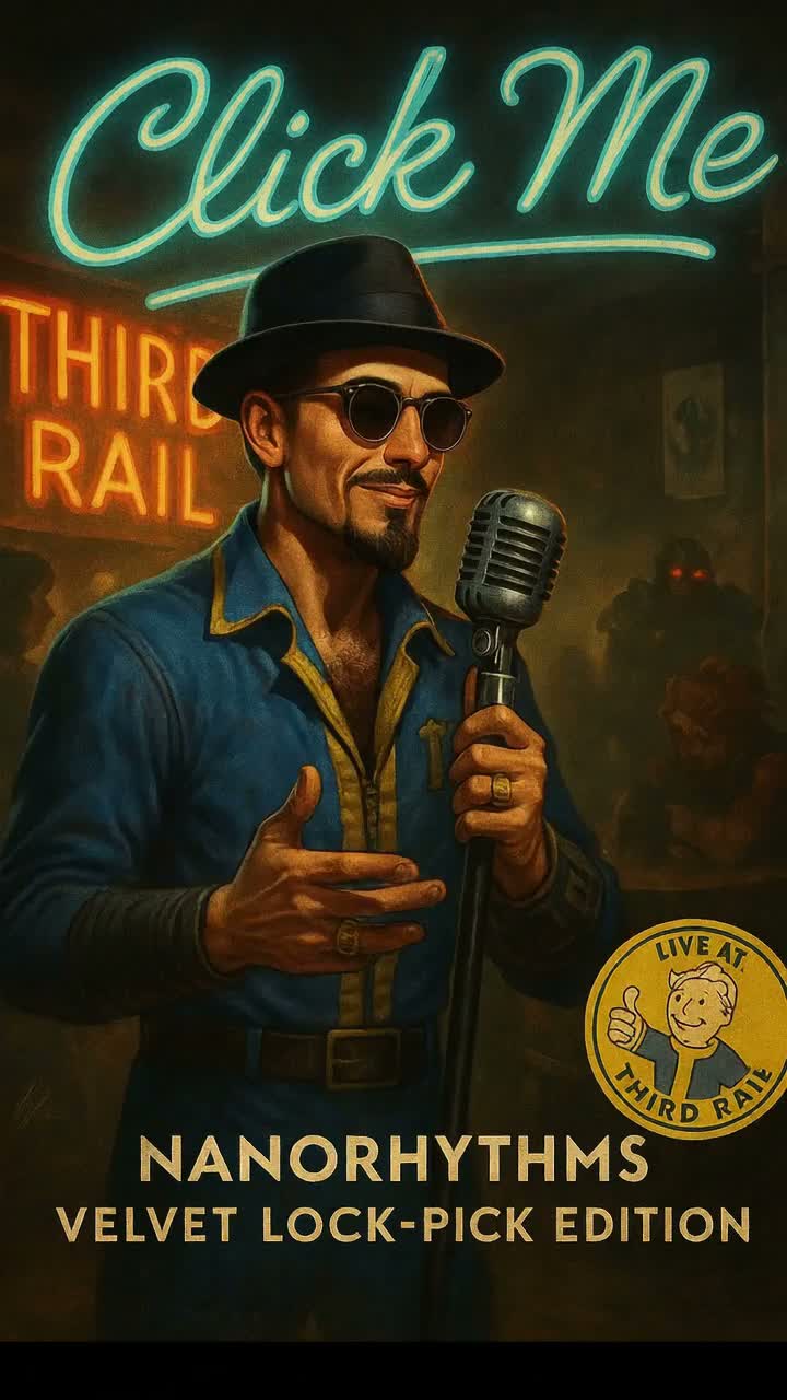 This jazz-influenced track opens with upright bass, brushed drums, and electric piano laying a sly, bouncy groove, Smoky baritone vocals glide through syncopations, enhanced by noir-inspired synths and bold brass stabs, Vibraphone and guitar add subtle, playful layers for a retro-futuristic mood, male vocals