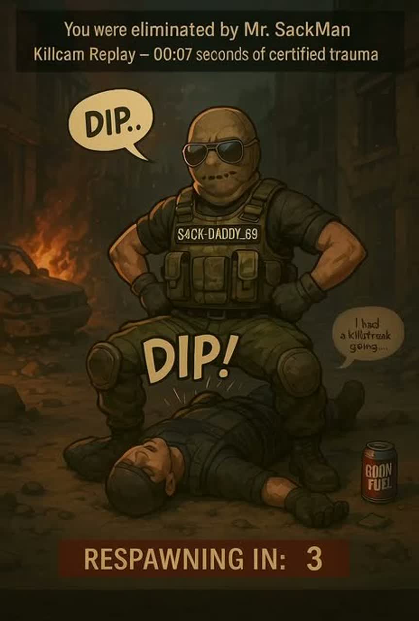 Backing Vocals: ⟪dip dip⟫ (Call of Duty a cappella bassline), deep male singer jingle tone funny comedy