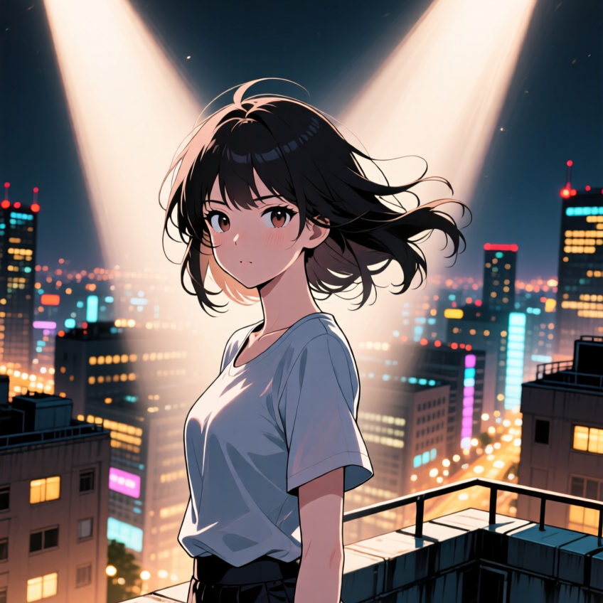 Major Key, J-pop, Young Female Vocal, Electropop, Synth-pop, Up-tempo, Hopeful, Uplifting, Rhythmic, Dreamy, Atmospheric, Pulsing Synth Bass, Digital Percussion, Ethereal Vocals, Layered Synths, Floating, Crystal Clear Sound, Digital Tears, a dreamy and atmospheric electropop with a clear, floating vocal