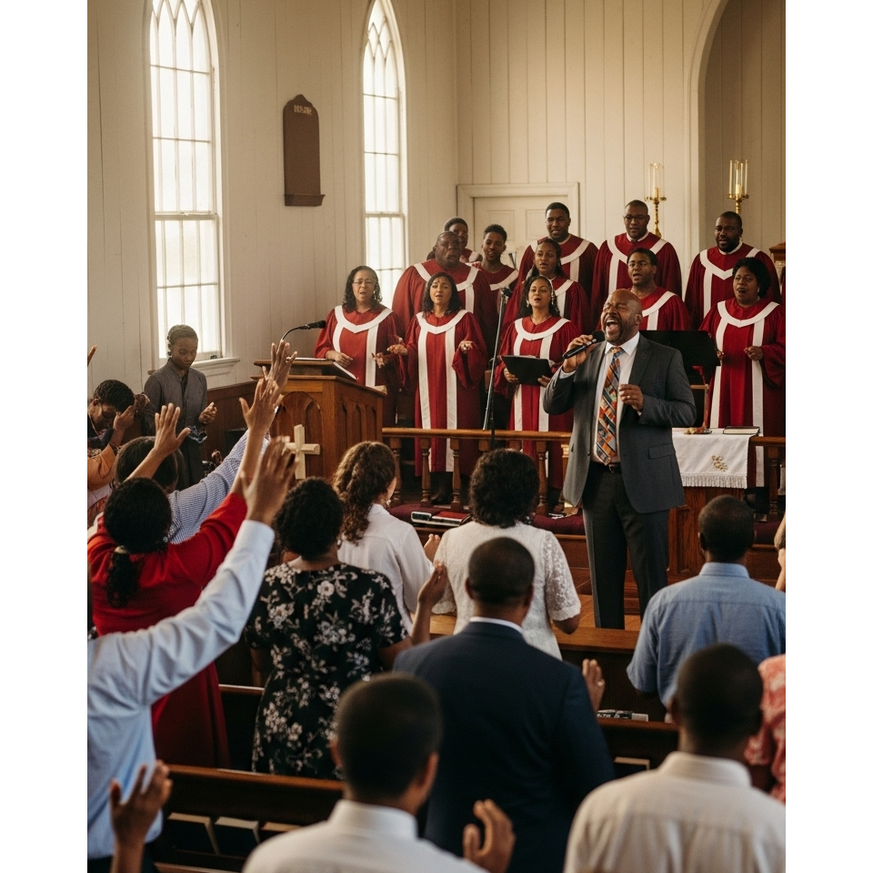 Aggressive emotional; Soul; rich, warm, dynamic crescendos for emotional impact, earnest and heartfelt female vocals for soulful delivery, Gospel Choir with dynamic call and response, powerful female vocals, a capella, testimonial
