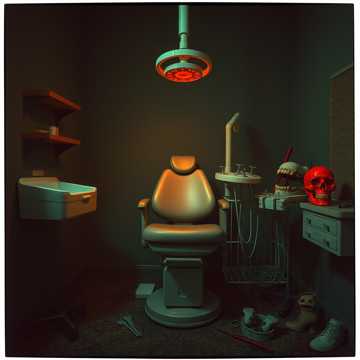 Brutal slam death metal with horror-clinic atmosphere, Tempo shifts: starts 90 BPM slow and menacing, jumps to 180 BPM blast-slam, drops to 60 BPM half-time breakdown, ends chaotic at 140 BPM, 8-string guitars tuned to drop E, ultra deep guttural vocals only, no highs, Double-kick drums, dental drill FX, blood gargle ambience, chainsaw bass, Dolby Atmos