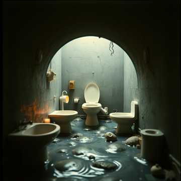 Ultra brutal goregrind with extreme toilet-themed humor, Hyperfast blast beats and mechanical double kicks drive filthy, downtuned guitars with chainsaw distortion and slamming groove riffs, Bass is thick, wet, and rumbling like a clogged drain, Vocals are ultra-low, bubbling gutturals — like gurgling sewage through a pipe — mixed with grotesque inhale grunts and pig squeals, Add short pauses featuring comedic horror and bathroom sound FX: flushes, splashes, squelches, retches, gags, Production is intentionally dirty and lo-fi, saturated like a sewer, Overall sound is chaotic, disgusting, funny, and absurdly heavy — a parody of goregrind brutality with infectious groove and over-the-top filth, The song should go for around 3 minutes