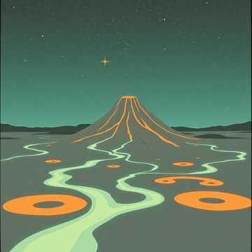 Instrumentation: Flamenco guitar, deep congas and bongos, cajón, bright brass flourishes, ambient volcanic steam and bubbling mud sounds