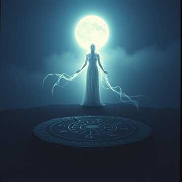 Folk metal ritual spell song, Hurdy-gurdy, pan flutes, frame drum, and pounding folk percussion woven with heavy guitars and double-kick bursts, Dark, mystical, and witchcraft-laden with an atmosphere of full-moon manifestation, Alternating haunting folk passages and heavy breakdown surges, Female clean vocals and layered chants, accented by deep male growls, Mood: ancient and empowering, like casting a spell under the moon, Vocal Style:
