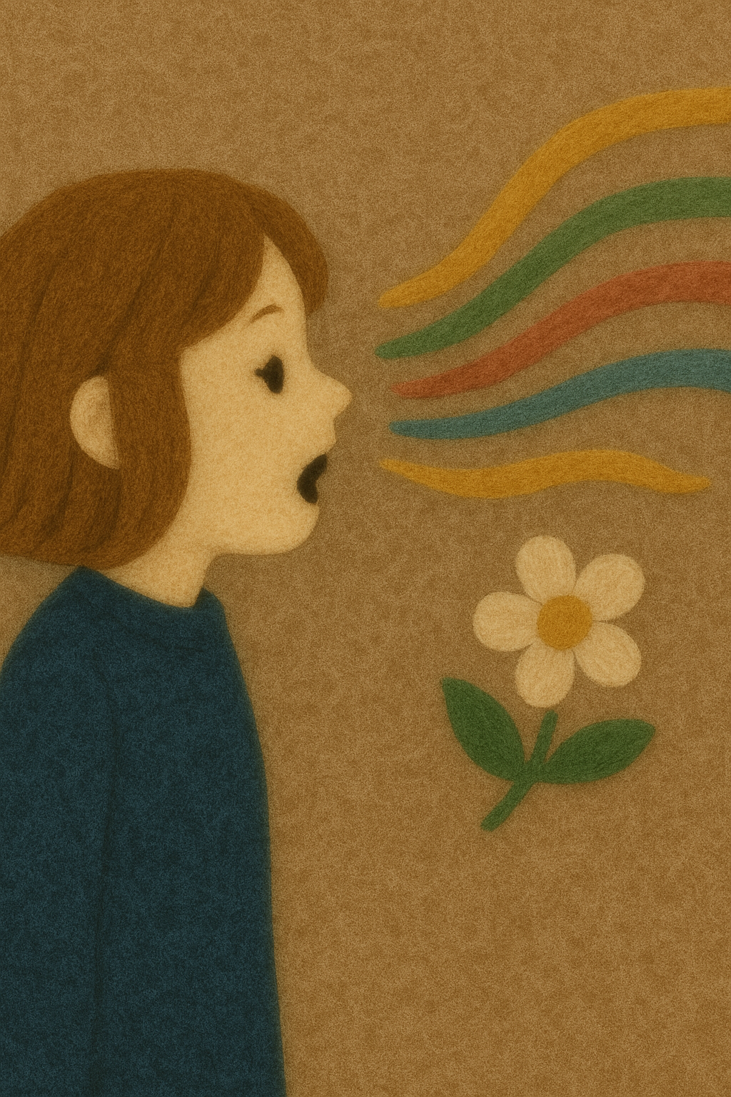 Folk style, whispered young female vocal, airy and intimate, close-mic’d, warm breathy tone, no vibrato, no force, soft but with a clear emotional core, Acoustic guitar picking, gentle folk ambience, minimal percussion, Do NOT make the vocal mature; keep it youthful, delicate, and slightly fragile, Natural tempo from the poem's breathing rhythm, Keep the mix light so the voice stays forward