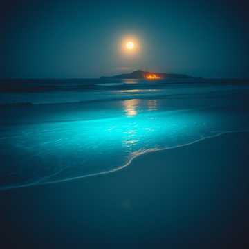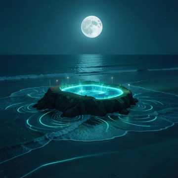 ambient natural cinematic, oceanic island textures blended with subtle digital undertones, warm evolving pads, gentle rhythmic tides, distant harmonic interference, soft glitch-like micro textures, immersive sleep-friendly soundscape, no harsh transitions, no traditional vocals