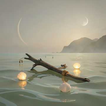 ambient natural cinematic, soft oceanic textures, warm evolving pads, gentle rhythmic tides, distant organic chimes, slow drifting harmonics, island atmosphere, peaceful and immersive, sleep-friendly, no harsh transitions, no traditional vocals
