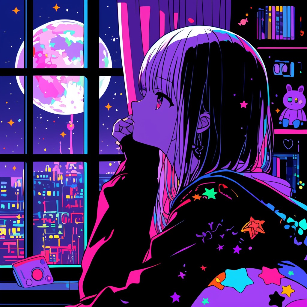 indie pop, Hyper pop, rap, groovy, Kawaii, Future Bass, Electronic, Driving Four-On-The-Floor Kick, Math Pop, Broken Rhythm, catchy beat, Bpm 180, Release Cut, Clear mix & mastering sound, shonen anime style