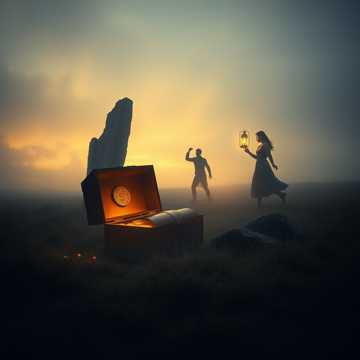 Dark, mythic Scottish acoustic duet with haunting male and female vocals, deep drum pulses, low drones, and a windswept, foreboding atmosphere, The tone should feel supernatural, dangerous, and ancient, like a curse whispered across a storm‑dark moor, Subtle Scots phrasing, breathy delivery, and a sense of temptation, downfall, and shadowed fate