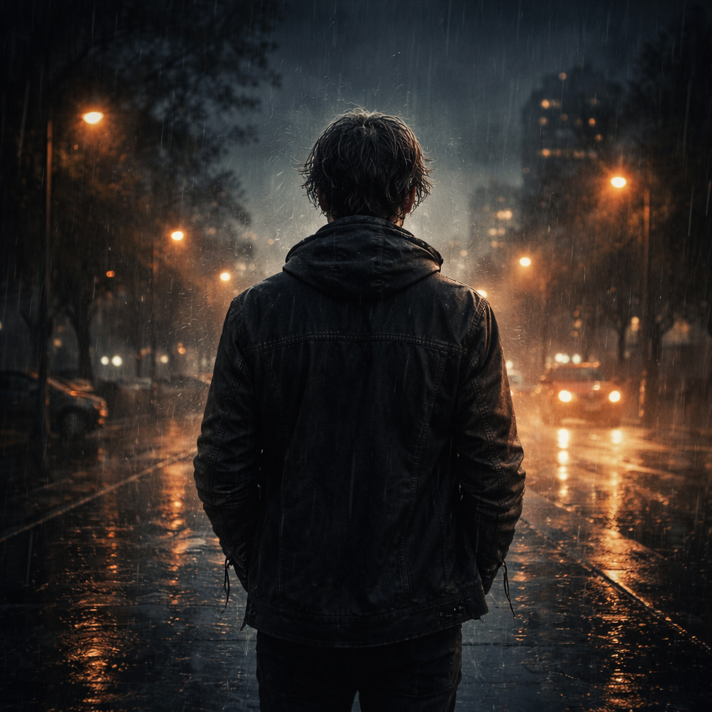 Stillness, rain outside, inner awakening, A quiet moment of understanding rather than heartbreak
