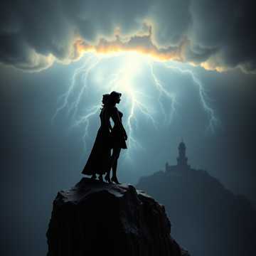 Progressive Metal, Cinematic Metal, complex time signatures, technical drumming, 132 BPM, emotional powerful female vocals, heavy syncopated guitar riffs, virtuosic synthesizer solo, melodic bass, symphonic elements, dramatic, melancholic to hopeful, epic guitar outro