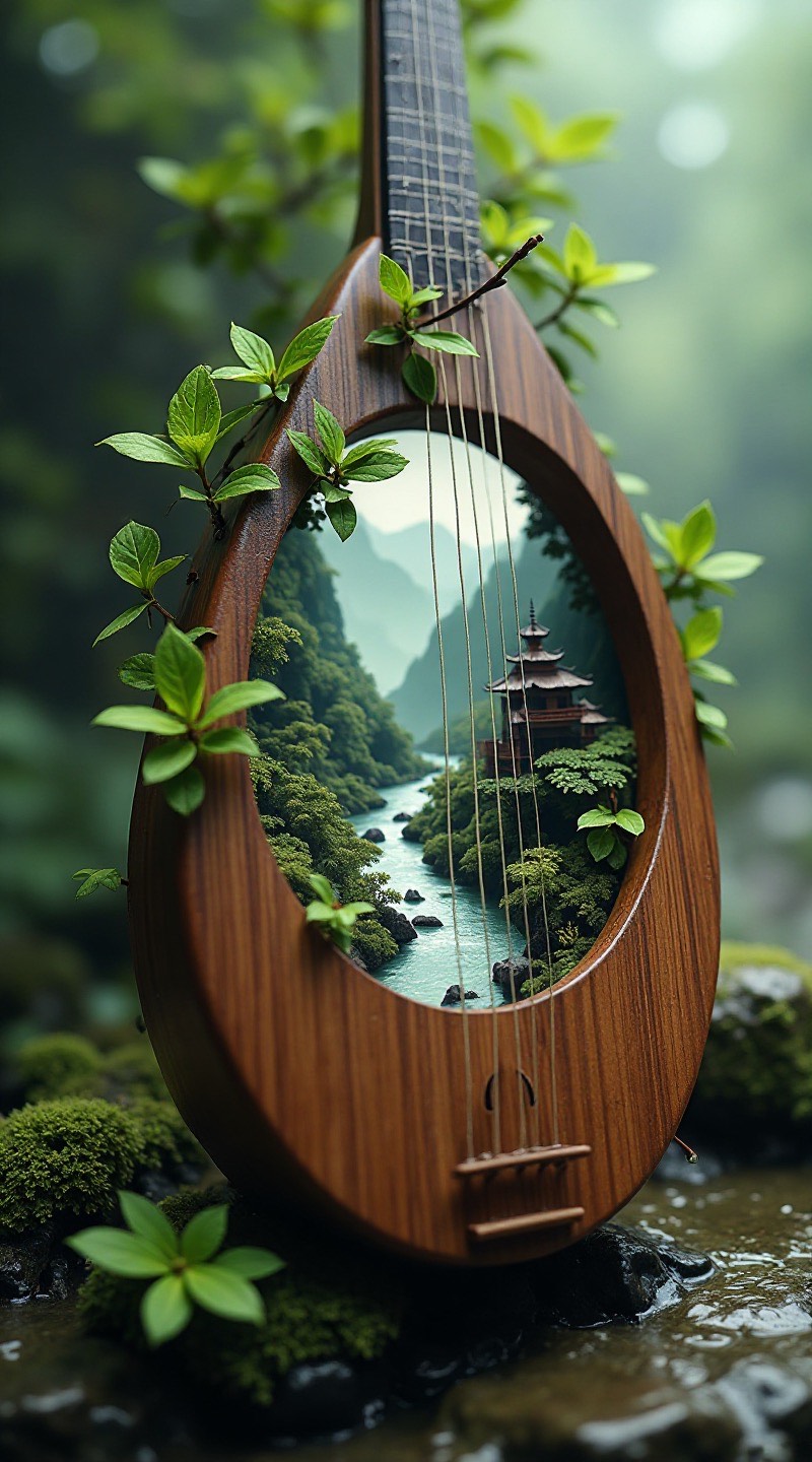 serene ambient‑ethnic track blending traditional Chinese instruments (guqin and pipa) with modern synth textures, The mood is contemplative and balanced: acoustic timbres sit at the forefront, supported by warm, subtle electronic layers, Tempo is gently upbeat (90–100 BPM), maintaining a flowing, meditative pulse without rushing, Guqin provides introspective melodies and harmonics; pipa adds rhythmic articulation and bright, percussive phrases, Synths (soft pads, light arpeggios) enhance the atmosphere without overpowering the acoustic core, Sound design includes natural elements — breath sounds, soft wind, distant water, and subtle field recordings — to deepen the sense of space, Vocal performance is clean and melodic throughout, with smooth transitions between whispered passages and clear, expressive singing, The voice should blend harmoniously with the instruments, following the emotional arc of the lyrics, Prioritize elegance, clarity, and a sense of inner calm