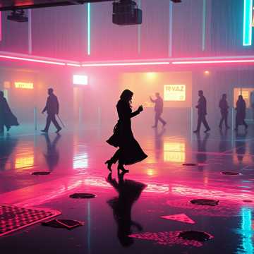 SvambahiCore: Dark cabaret x cyber‑east, 78 BPM, Female smoky vocals (whisper → theatrical cry), enigmatic laughter, Instruments: honky‑tonk piano (detuned), guqin (clean in verses, distorted in choruses), taiko drums, gritty guitar slides, Synths: cold analog pads, binaural pulses, Dynamics: verses (piano + guqin + rain), choruses (doubled guitars + taiko), Mood: erotic tension in a smoke‑filled cabaret, digital decay behind velvet curtains
