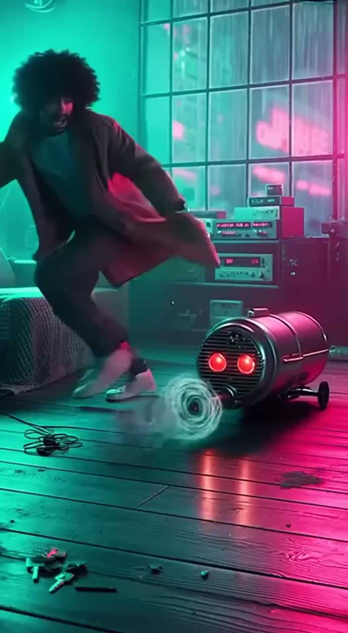 Spoken word cyberpunk trip-hop, Slow tempo (70–85 BPM), Deep warm sub-bass, dusty trip-hop beat, soft vinyl crackle, Atmospheric analog pads mixed with subtle digital glitches, Neon-noir cyberpunk mood, but intimate and cozy, Minimal percussion, no aggressive drums, Voice: intimate spoken word, calm, slightly ironic, философский тон, as if narrating late at night by a window in a futuristic city, No singing, no hooks, no chorus, Long evolving structure, cinematic flow, Mood: cozy existentialism, warm solitude, gentle absurdity, Layered environmental Foley: muffled sounds of rain on glass, distant maglev hum, low holographic advertisements murmur, Electric piano Rhodes chords with heavy reverb, Brushing drum style, lo-fi aesthetics, Sophisticated soundstage, ultra-wide stereo imaging, Occasional delay on voice for space, Final mix: warm tape saturation, nostalgic yet high-tech