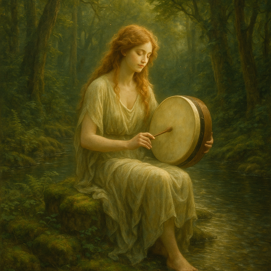 Opens in D minor: fiddle, tin whistle, bodhrán, and acoustic guitar weave over flowing river FX, Verses roll with earthy strums, pulsing bass, and syncopated Drum’n’Bass beats, Chorus erupts: soaring dual vocals, distorted hurdy-gurdy, cinematic choirs, heavy guitars, and thunderous drums, Propulsive rhythm mimics the current, The bridge chills to half-time tribal pulse—bodhrán and cavernous reverb—then snaps to a euphoric, full-force DnB finale channeling all folk, industrial gothic, and choral textures in a triumphant surge