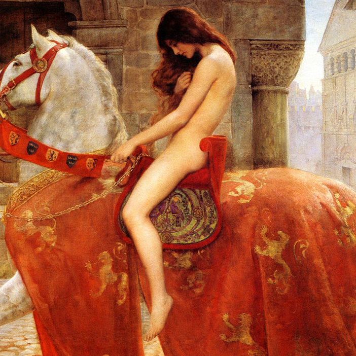 Cinematic English ballad: Warm strings, acoustic guitar, expressive female vocal, Verse softly and with steady emotion, then build to an epic, full chorus, After chorus, style drops: acoustic elements fade, minimal tension builds with dark electronic textures for avantgarde spoken German bridge, vocal front and sparse synths, After the bridge, a shouted line: “We jump now into the 21st century!” – hard cut into energetic German punk/electro style, Now: distorted guitars, electronic beats, aggressive drums, crowd chant and intense female vocals, Modern activist Godiva in green vinyl catsuit riding through Berlin, media spotlight, followers singing, tension and provocation, Last chorus in German, loud, triumphant, crowd feeling, Contrast traditional ballad and raw punk energy, Mood: courage, transformation, rebellion, theatrical, modern-protest