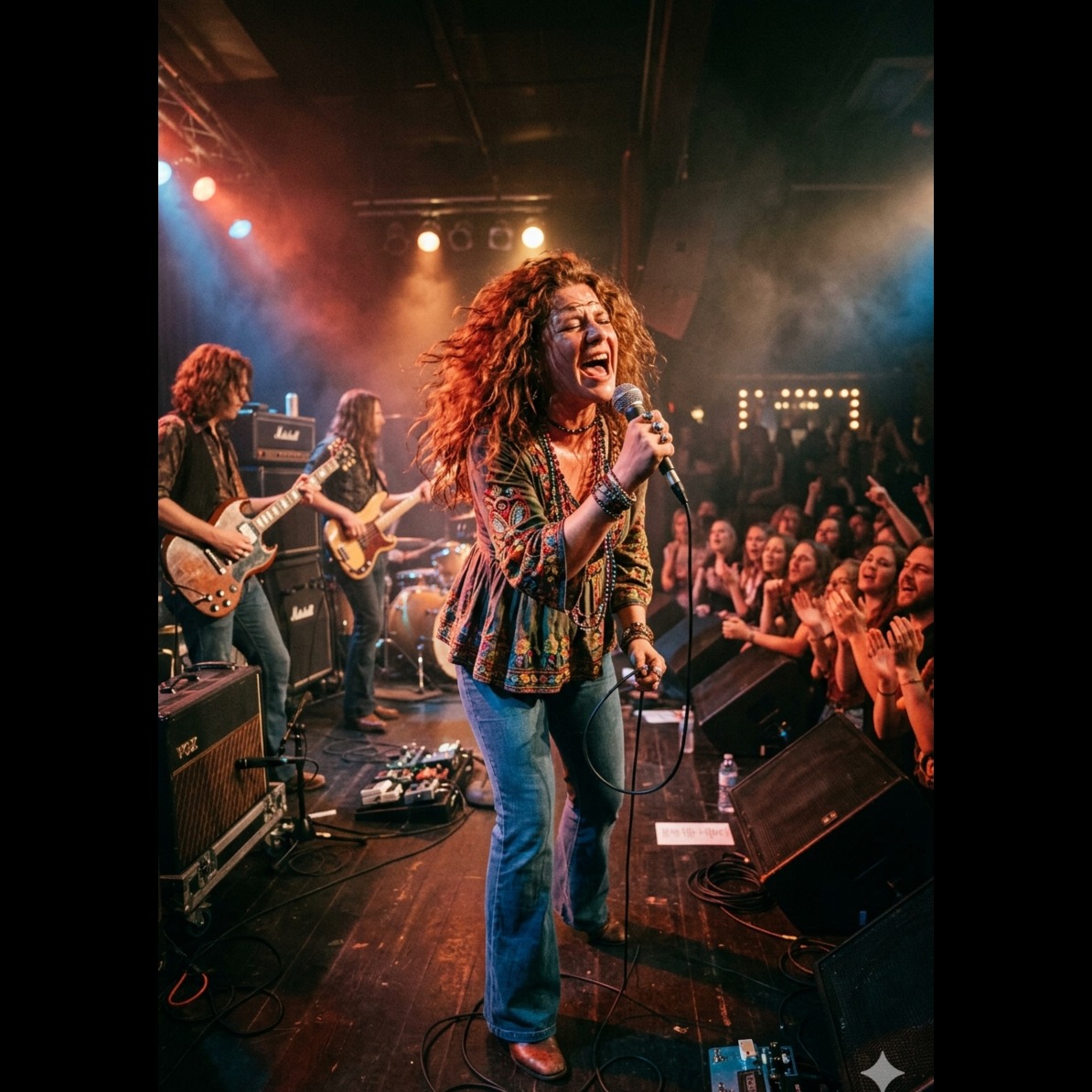 live concert, psychedelic blues, soul, minor, 60BPM, raspy powerful soprano vocal, live shout chorus, call and response, electric guitar(feedback sustain), organ(vintage combo organ chord), bass guitar(deep slow walk), drums(loose shuffle), harmonica(mournful bend), A woman's raw anguish poured into a slow burning blues, her voice breaking and soaring between whisper and scream