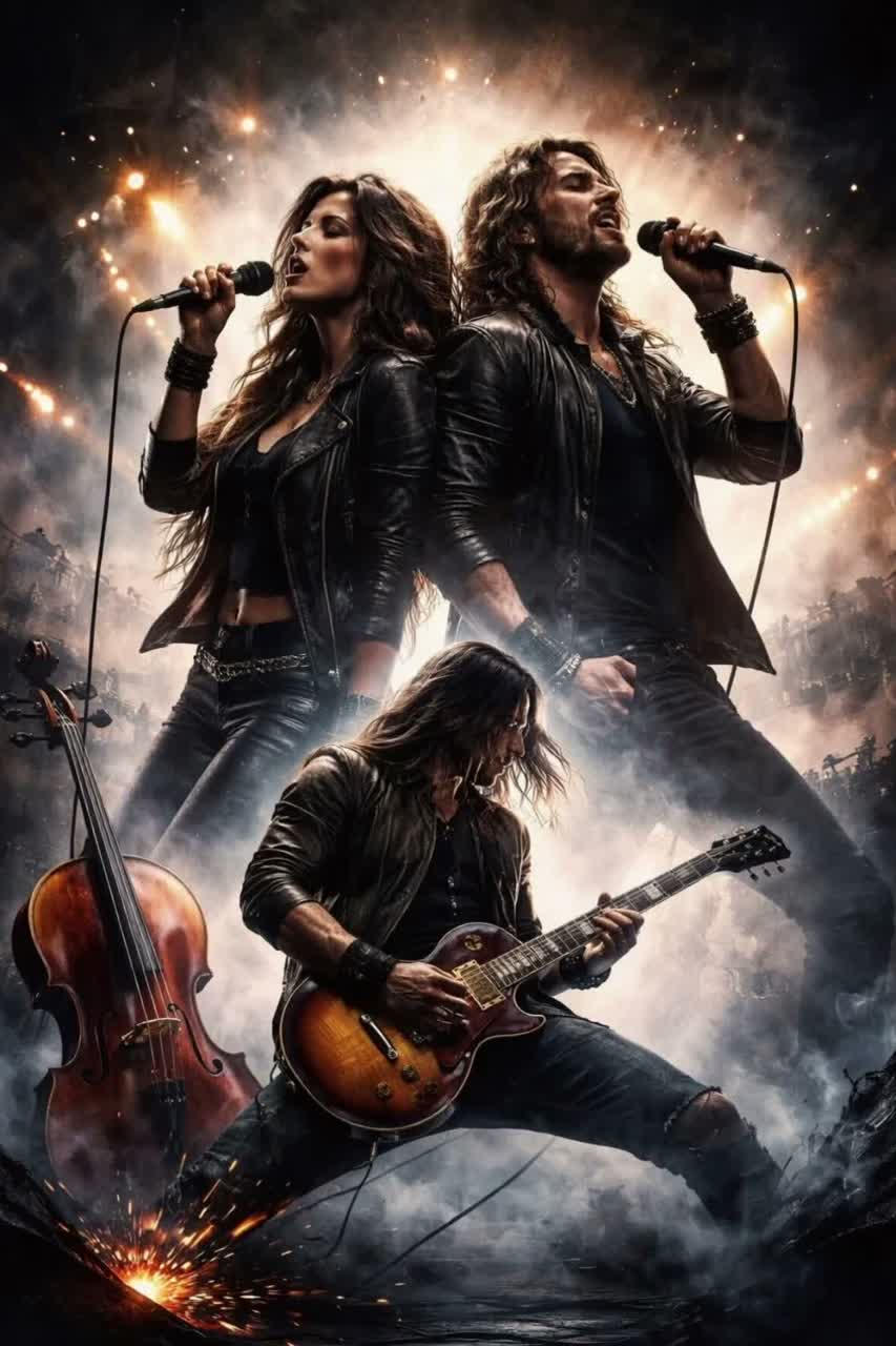 Powerful Arena Rock Ballad Duet (Male & Female), Max 5:00 (~4:30โ4:50), Keep Male / Female / Both Parts Exactly As Written, Heavy Electric Guitar Presence Throughout: Driving Distorted Rhythm Guitars, Thick Power Chords, Gritty Rock Tone, Vocals Deep, Rough, Smoky And Raspy, Male: Low, Raw, Gritty Rock Voice With Emotional Intensity, Female: Deeper, Darker Tone, Husky And Powerful, Not Pop, Strong Chest Voice And Edgy High Belts, Intro With Dark Clean Guitar Riff + Electric Cello Texture, Quickly Building Into Full Band, Verses Moody But With Steady Rock Groove, Pre-Chorus Tension Build With Rising Guitars And Toms, Chorus Massive Arena Sound, Wide Distorted Guitars, Punchy Live Drums, Powerful Gritty Duet, Bridge Builds Into Key Change, After Bridge: Huge 30โ35 Sec Electric Guitar Solo, Emotional And Badass, High Sustain, Expressive Bends, Fast Melodic Runs, Stadium Rock Energy; Electric Cello Harmonizing Underneath, Final Chorus Higher, Louder, Explosive Rock Finish, Tempo 80 Bpm