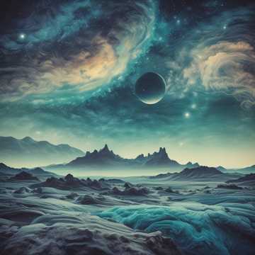 Epic orchestral-electronic fusion—’ sweeping strings and brass with styled modular synth textures, galactic reverb, and ambient space whispers-add celestial strings and guitars with ambient textures