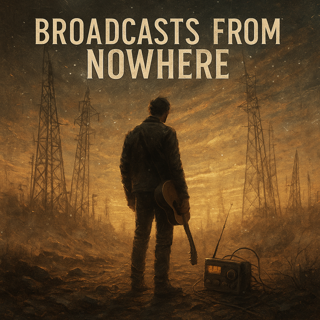 Lo-fi acoustic guitar leads with warm, melancholic cello lines amid analog drones and dusty shortwave interference, Broken radio static, subtle vinyl crackle, and field recordings—gravel steps, clanging metal, distant wind—form the ambient bed, Fragmented voice samples linger, Three intimate, softly delivered verses blend into two gently building choruses; a bridge swells with layered analog noise and detuned harmonics, Fading outro overlays spoken phrases—', this is Station 0, still listening, still dreaming…'—as textures dissolve into silence, Vocal is wistful, restrained, with controlled sibilance, blending into the surreal electro-acoustic, post-apocalyptic folk atmosphere, ‑No harsh transients, ‑no shrill highs, ‑no piercing sibilance, ‑no heavy reverb wash, ‑no metallic ringing, ‑Avoid muddy low-end buildup, ‑boomy resonances, ‑boxy mids, ‑phasey stereo widening, ‑or pumping compression, ‑No bright digital synths, ‑no EDM percussion, ‑no clean pop sheen, ‑Keep vocals controlled: no shouting, ‑no over-compression, ‑no robotic tuning, ‑no breath blasts, ‑no sudden volume jumps, ‑Avoid chaotic layering that buries acoustic elements, ‑No loud hiss spikes, ‑no harsh distortion artifacts, ‑no clipping, ‑Keep field recordings subtle: no overpowering wind, ‑static, ‑rumble, ‑or abrupt cuts, ‑Maintain an intimate, ‑warm, ‑balanced mix with stable gain structure and clear separation between elements