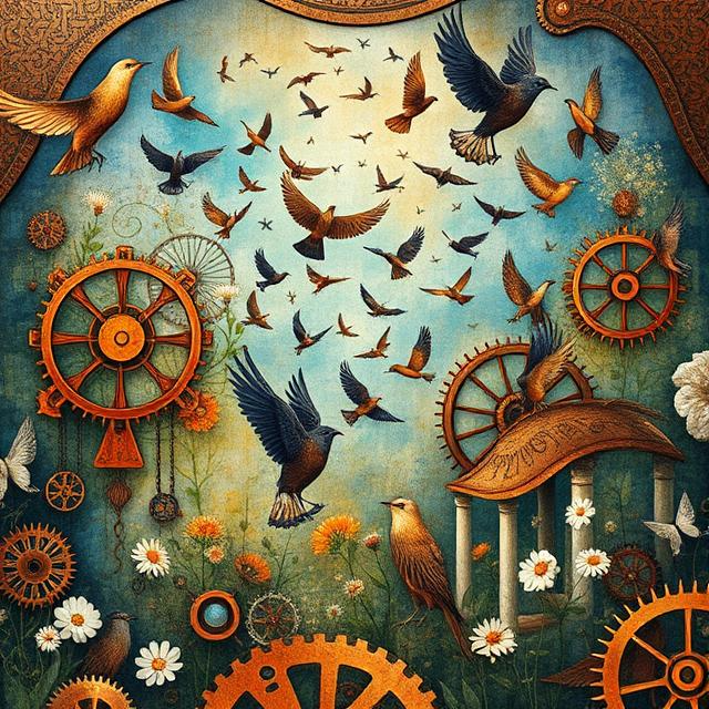 Styles: progressive rock, jazz-rock, experimental electronic soundscape, uplifting midtempo, Instrumental buildup: no vocals, guitar repeating a little complicated riff, Vocals: two male emotional burning tenor vocals, unisono vocal duet, Instruments: Micromoog bass synth, Multimoog synth, Hohner clavinet, Arp Omni synth, Korg Polyphonic Ensemble synth, Fender Rhodes piano, Les Paul electric guitar, Arp Avatar guitar synth, sound effects, nature sound effects