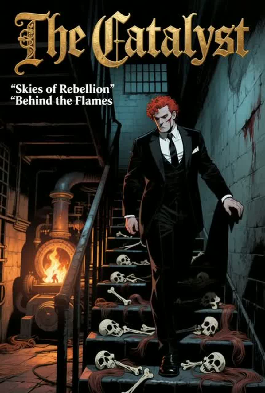 Dark steampunk gothic metalatmospheric horror with mechanical drones, whispers, clock ticks, metallic ambience, and soft male vocals expressing fear and unease, Part II: transition with church bells, then heavy distorted guitars, deep drums, and powerful steampunk-industrial energy, Male vocals grow determined as the engineer decides to destroy the furnace that feeds on souls beneath the casino, Dark, gothic rock with theatrical and poetic atmosphere, Deep male vocals, dramatic intensity, melancholic melodies, haunting choirs in the background, Heavy guitars blended with darkwave synths, slow but powerful rhythm, echoing drums, The mood is eerie, mysterious, and intense โ like a descent into madness and beauty at the same time