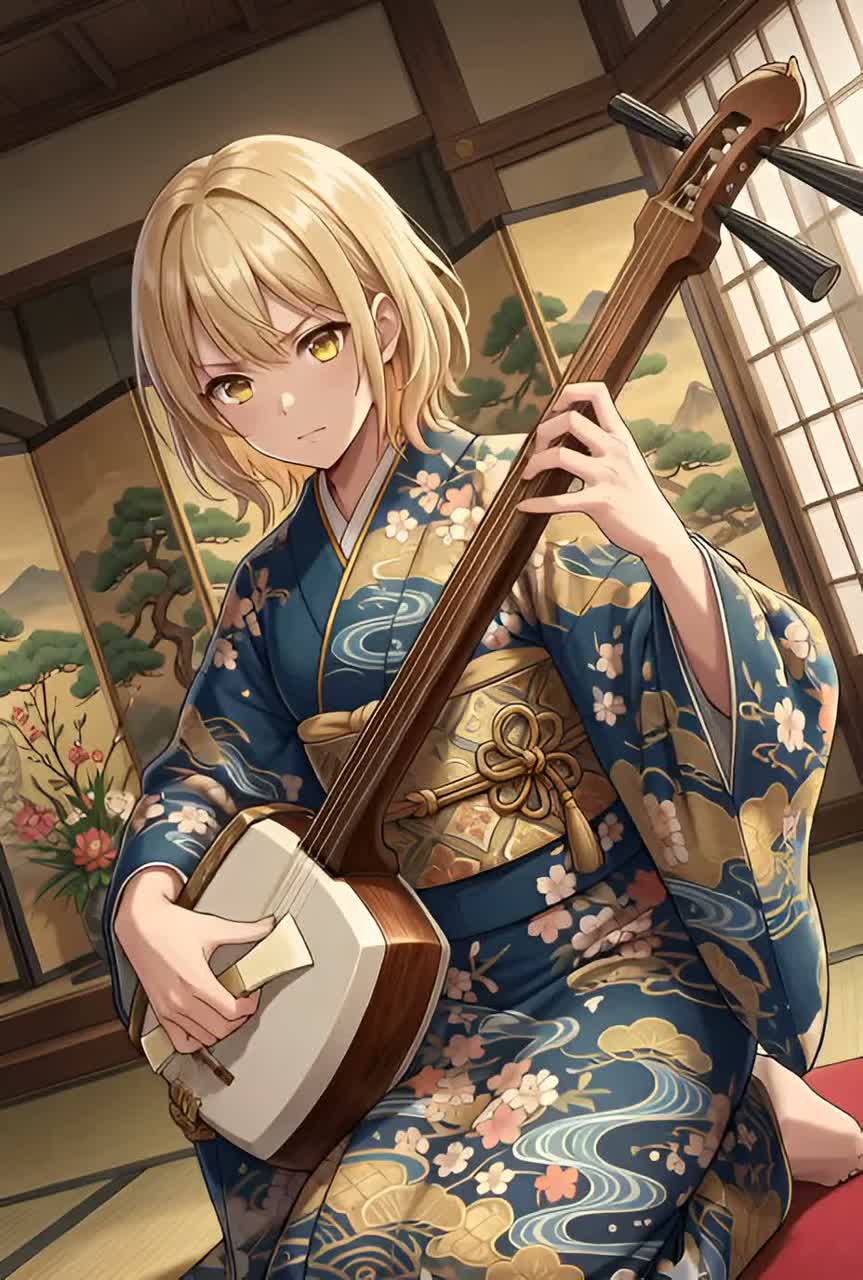 Pure Acoustic Wagakki Ensemble, 100 BPM, No modern instruments, no synthesizers, no electronic drums, Rhythmic drive provided by aggressive Tsugaru Shamisen (percussive Bachi-uchi technique) and 17-string Koto for deep acoustic bass resonance, Percussion features Shime-daiko (high-pitched) and Hyoshigi (clappers), Taiko is kept as a distant, atmospheric ambient heartbeat, Shakuhachi provides airy, haunting textures, Powerful, raw male vocals, front-and-center, Traditional Kakegoe (vocal shouts) included for high energy, Rich wood and silk string texture, cinematic acoustic mix