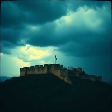 A brutal doom metal foundation of sludgy, down-tuned guitars and thunderous double-kick drumming opens, soon engulfed by epic symphonic black metal textures—blazing tremolo-picked melodies, orchestral blasts, haunting choirs, and swirling synths, Dynamic tempo shifts heighten chaos; dramatic breaks feature timpani and brass