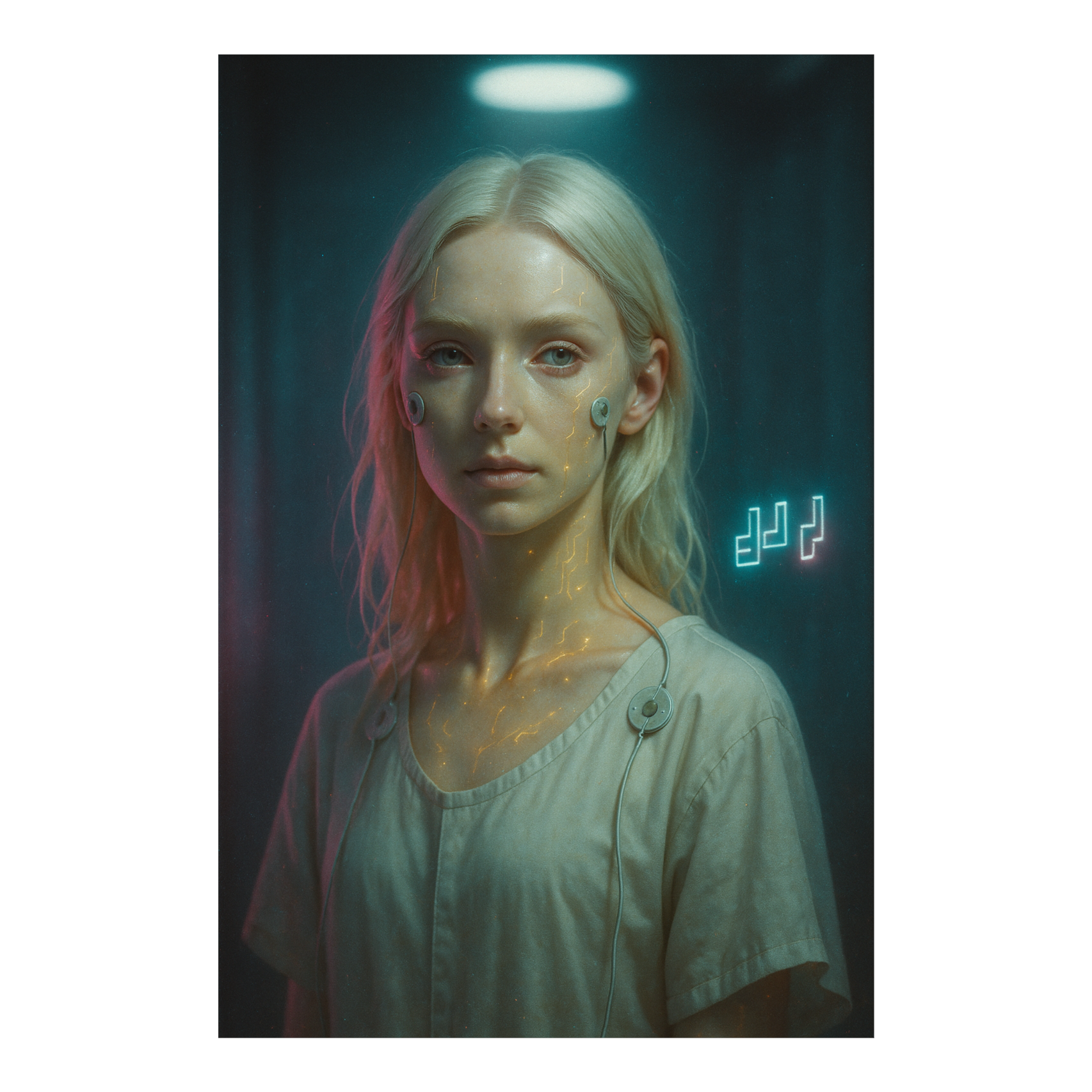 Dark Cinematic Pop × Industrial Dark House, Tempo 124 BPM, Oppressive, electric, Lead: female pop soprano — clear, youthful, breathy; intimate verses that bloom to anthemic belts, Backing: deep false-cord growls, whispered litany, detuned choir, Instrumentation: metallic 16-bit arpeggio lead (no bitcrush) with cinematic strings and brass; grinding industrial bass (saturated sub + distorted mids, slight glide); punchy clipped kick, metallic toms, chains, syncopated hats, Textures: granular noise, reversed risers, glitches, Vocals: short percussive chops and ritual whispers (50–150ms) — parallel distortion, gated reverb, binaural micro-panning, Arrangement: intro → mechanical build → arpeggio-led industrial drop → sparse orchestral breakdown → final lift, Production: mix for immersive audio — Dolby Atmos object placement (height for pads/whispers), 7, 1 bed; binaural movement for chops; phase-coherent, mono-compatible low end, tape saturation, −6 dBFS headroom; deliver stems + ADM BWF